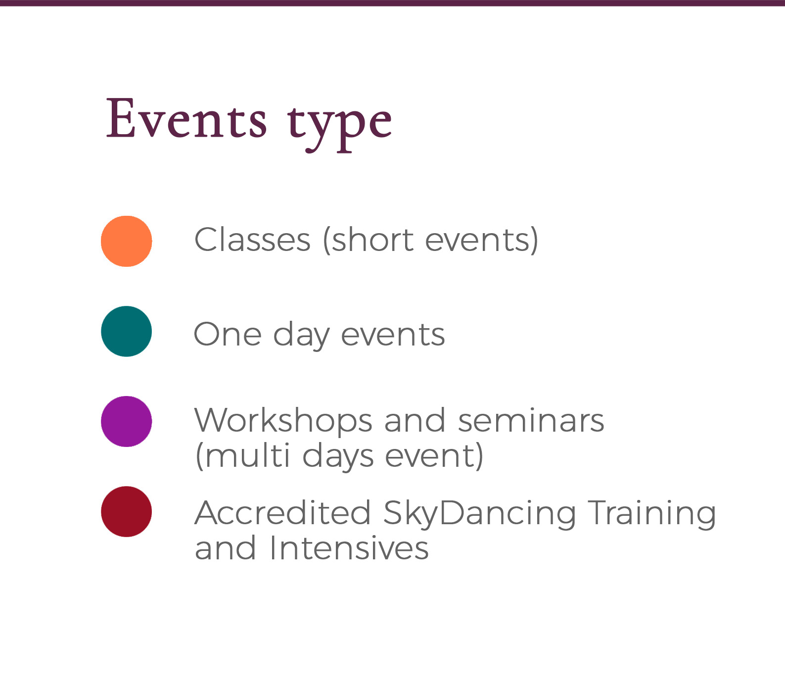 Here is a complete list of Tantra evenings, Tantra days and workshops, and Tantra courses (2 days or more) offered by certified teachers from the SkyDancing Tantra community in PARIS and the surrounding area: